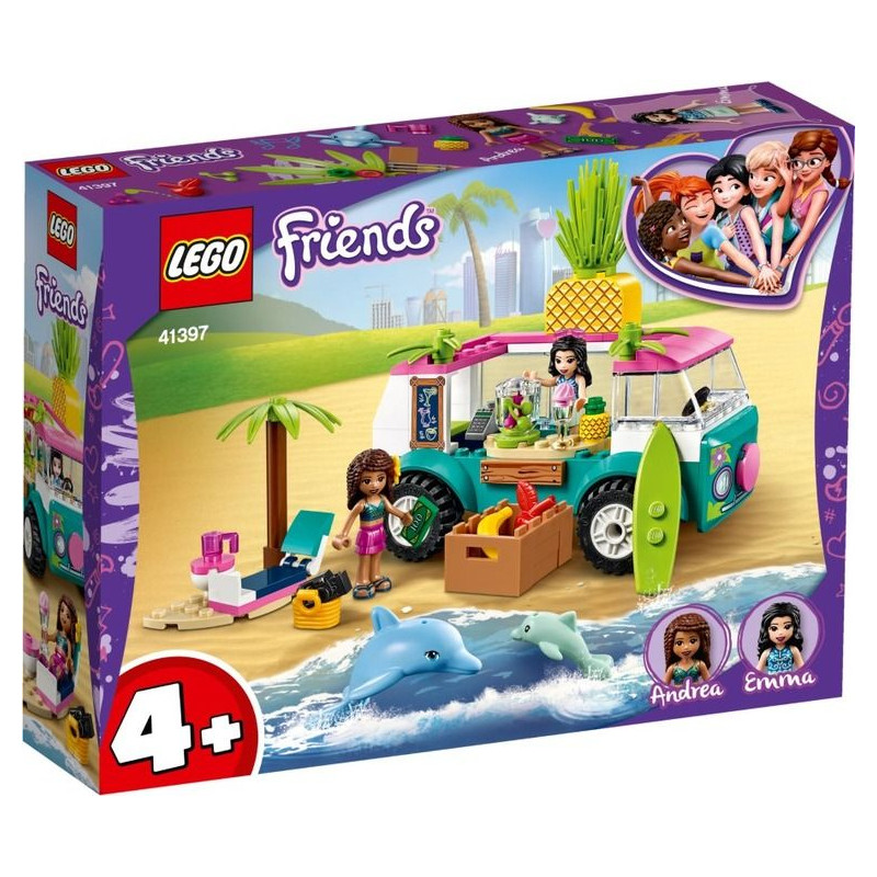 Młodzi kucharze docenią atrakcje dostępne w łatwym do zbudowania zestawie LEGO® Friends Food truck z sokami (41397). Zestaw dla dzieci od 4 lat zapewnia mnóstwo okazji do wymyślania historyjek, gwarantując dzieciom długie godziny świetnej zabawy przy przygotowywaniu koktajli, opalaniu się na plaży czy też harcowaniu z delfinami. Zabawkowy food truck będzie świetnie wyglądał jako ozdoba biurka. Można nim też jeździć po pokoju i zatrzymywać się wszędzie tam, gdzie przydałoby się trochę owocowego orzeźwienia! Wstęp do świata LEGO Zestaw LEGO Friends 4+ w ciekawy sposób nauczy przedszkolaki budowania. Zawiera on specjalne podwozie startowe, dzięki któremu nawet zupełni nowicjusze poczują dumę z samodzielnego złożenia zabawkowego samochodu. Pomocna dłoń W opakowaniu znajdziesz proste instrukcje budowania i zabawy, które pomogą dzieciom zrozumieć poszczególne etapy procesu budowania, nabyć pewność siebie i rozwinąć wyobraźnię. To rewelacyjny sposób, by wprowadzić maluchy w świat budowania z klocków LEGO. Możesz też pobrać aplikację LEGO Life, w której dzieci będą mogły obejrzeć ten model LEGO Friends za pomocą funkcji Instructions PLUS. Różne tryby przeglądania pozwolą im zobaczyć, jak ich konstrukcja naprawdę ożywa.