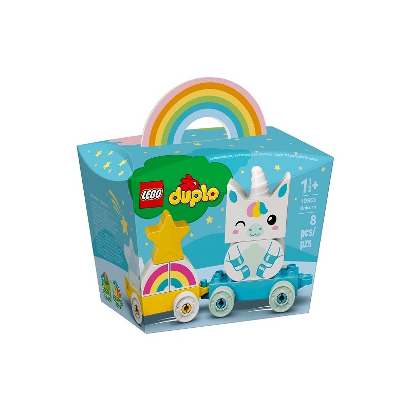 Kolorowy zestaw Lego Duplo z Jednorożcem idealnie sprawdzi się dla dziecka, które zaczyna swoja przygodę z klockami. Dzięki temu zestawowi dzieci uczą się kształtów oraz rozwijają podstawowe zdolności konstrukcyjne.Kolorowe klocki zachęcają dzieci do zabawy. Pociąg można łączyć z innymi jeżdżącymi zabawkami Lego Duplo przez co zabawa może stać się jeszcze ciekawsza.