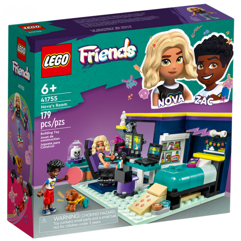 Zestaw LEGO to mnóstwo zabawy dla sześciolatków i starszych dzieci. Zac nie wiedział, że tyle łączy go z Novą, dopóki nie odkrył, że uwielbia gry - tak jak on! Teraz mogą rozwijać swoją przyjaźń podczas wspólnej gry. Dzieci będą zafascynowane możliwością odkrywania funkcji pokoju. Znajduje się w nim komputer z klawiaturą i neonowymi wiatrakami, a także fotel gamingowy i mikrofon. Dzieci mogą pomagać postaciom w opiece nad Picklem, przygarniętym pieskiem. Jest tu także stół, na którym Nova naprawia wózek Pickle’a oraz rampa, po której pies wjeżdża na łóżko. Dodatkowo w sypialni kryją się detale (na przykład ukryty plakat), które zdradzają inne zainteresowania Novy. Inspiracja dla młodych budowniczych. Dzieci mogą cieszyć się łatwym i intuicyjnym budowaniem dzięki aplikacji LEGO Builder. Mogą w niej przybliżać i obracać model w 3D, zapisywać zestawy i śledzić postępy. Nowości w mieście Heartlake. W świecie LEGO Friends dzieci mogą zawierać przyjaźnie, odkrywać ekscytujące miejsca i odgrywać realistyczne przygody.