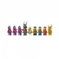 Konstrukcyjny zestaw zawiera dziewięć minifigurek: wyjątkowego złotego Oni Lloyda, złotego Cole’a, złotego Zane’a, złotego Kaia i złotego Jaya. Każdy z nich ma własną broń żywiołów. Wśród złoczyńców są zaś kryształowy król, dwaj niszczyciele Kamienia Zemsty i wojownik Kamienia Zemsty. Pomóż wojownikom ninja odzyskać broń żywiołów, którą ukradła armia Kamienia Zemsty. Tylko uważaj, bo wszyscy przeciwnicy mają własną niebezpieczną broń. Rusz do walki razem z Lloydem na grzbiecie wspaniałego czworogłowego smoka i pokonaj kryształowego króla. Musisz zwyciężyć, aby ocalić miasto NINJAGO!