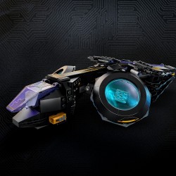 Ten imponujący model jest wierną repliką latającego statku pilotowanego przez Shuri w filmie „Czarna Pantera: Wakanda w moim sercu” wytwórni Marvel Studios. Wielofunkcyjny i mocarny pojazd superbohaterów ma dwa duże silniki na przegubach kulowych, dzięki którym dzieci mogą przechylać je i obracać pod różnymi kątami. Za pomocą zawiasów skrzydła można składać do przodu lub do tyłu. Z tyłu statku jest schowek na broń Shuri, a z przodu zamontowane są dwa miotacze klocków. W zestawie są cztery minifigurki — Shuri, Ironheart MK 1, Nakia i Attuma — wszystkie wyposażone w ciekawą broń i akcesoria.