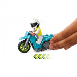 Zestaw dla dzieci w wieku od sześciu lat zawiera ciężarówkę z płonącymi rurami wydechowymi oraz przyczepę z platformą i składaną rampą startową, a także trzema regulowanymi ognistymi obręczami. Wystarczy dodać napędzany kołem zamachowym motocykl kaskaderski, kierowcę ciężarówki i dwie minifigurki kaskaderów, aby zapewnić sobie godziny pełnej akcji zabawy. Zestaw zawiera ilustrowane instrukcje i aplikację LEGO Builder – cyfrowe narzędzie do przybliżania i obracania modelu, które pomaga dzieciom zwizualizować gotowy model ze wszystkich perspektyw.