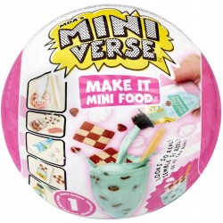 Mini Jedzenie Restauracja to kolorowe zestawy, które zawierają produkty, które można znaleźć w knajpkach, kawiarniach i barach. Samodzielnie stwórz pięknie wyglądające danie ze składników zawartych w opakowaniu. Postępuj zgodnie z dołączoną instrukcją lub oddaj się pasji tworzenia i przygotuj coś unikalnego! Po stworzeniu potrawy lub napoju, wystaw masę plastyczną na bezpośrednie działanie słońca na co najmniej pięć minut lub do momentu, gdy się utwardzi. Kula posłuży ci za stylową podstawkę do eksponowania jedzenia! Miniaturowe jedzenie jest zamknięte w kuli niespodziance Make It Mini Food. Odkrywanie wnętrza opakowania za każdym razem jest wielkim przeżyciem, bo nigdy nie wiesz, co jest w środku!