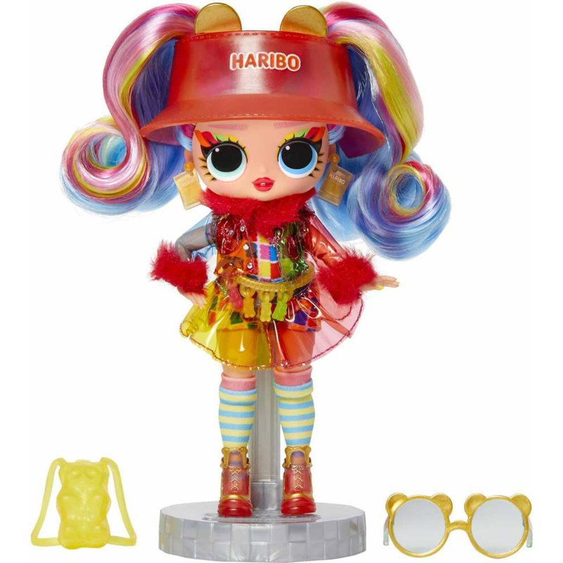 Przepiękne laleczki Lalka LOL Tweens Holly Happy jest troszkę słodka i troszkę kwaśna! Ma swój ulubiony kolor - tęczowy! A Haribo to jej ulubiony smakołyk. Ta energiczna nastolatka ma na sobie kombinezon ze wzorem misiów Haribo i prześwitującą spódniczkę z paskiem. Długie, barwne włosy upięła w dwa kucyki. Modowa lalka LOL posiada ciuszki i dodatki, które podkreślają jej osobowość. Przepiękny plecaczek w kształcie żelka Haribo i oryginalne misiowe okulary!