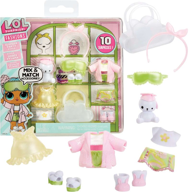 Zabawka pochodzi z popularnej serii zabawek L.O.L. Surprise! Zestaw Slumber Party przedstawia mały komplet kolorowych ubranek, dopasowanych do mini laleczek z serii L.O.L. Surprise.