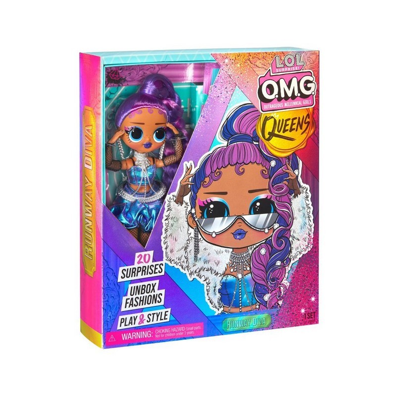 Nowa seria lalek w rodzinie L.O.L. Surprise - Lalki fashion O.M.G. Queens! Królowe wiedzą, że są królowymi, lansują swój styl i są dumne ze swojej odmienności. Prezentują styl, czy to na wybiegu, parkiecie, czy na gali. Ogłaszają nowe przyjaciółki O.M.G. Queens! Diva jest połączeniem miejskiej mody i olśniewającego glamu. Ubierz Runway Diva w jej szalone stroje i oszałamiające dodatki.