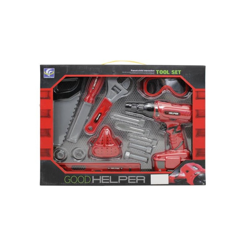 Zestaw czerwonych narzędzi w pudełku. Kompletny zestaw gwarantuje mnóstwo kreatywnej zabawy. Poczuj się jak mały majsterkowicz.