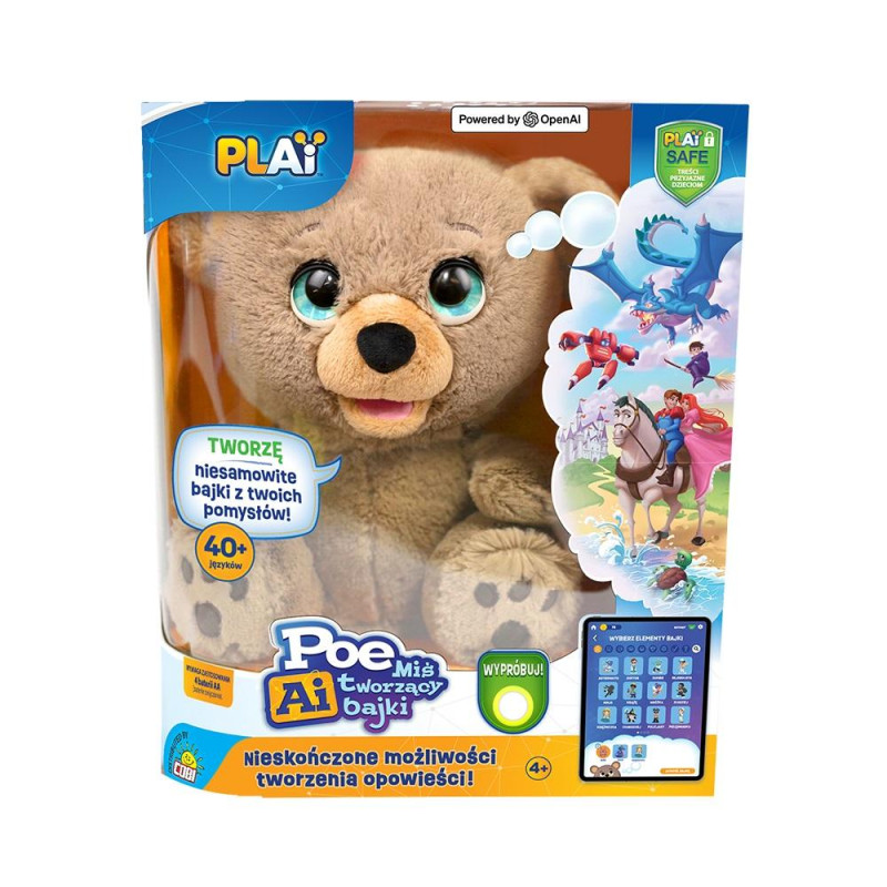 Miś POE - Twój Prywatny Kreator Bajek z AI! Oprogramowanie sztucznej inteligencji pojawia się wszędzie - a teraz jest nawet w misiach! Dzięki Misiowi POE każda opowieść, jaką usłyszy Twoje dziecko, będzie wyjątkowa i dostosowana do jego gustu. Ty wybierasz, Miś POE tworzy! Chcesz, aby Twoje dziecko słuchało opowieści, które samo współtworzy? Wybierz bohaterów, miejsce akcji, a nawet nastrój - śmieszna czy straszna historia? A może zostawisz wszystko Misiowi POE, który dzięki AI wymyśli wszystko sam? Nieskończone możliwości! Żadna opowieść nie jest taka sama!