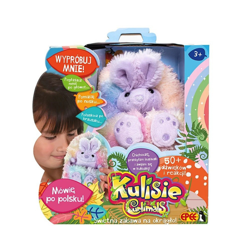 Kulisie to przesłodkie interaktywne pluszowe zwierzątka, które zwijają się w kłębek, gdy je połaskoczesz. Kulisie reagują na dotyk, posiadają 3 punkty aktywujące, oferują ponad 50 reakcji i dźwięków: odgłosy całowania i spania, śmieją się i kichają. Oprócz dźwięków Kulisie, wypowiadają 3 słodkie zdania po polsku. Mają mięciutkie, kolorowe futerko. Kulisie posiadają również funkcje prorozwojowe: zachęcają do zachowań wychowawczych, pobudzają wyobraźnię, wspierają rozwój emocjonalny. Tęczowy Króliś to nowość w rodzinie Kulisiów. Słodki i uroczy króliczek, który zachwyci dzieci swoim mięciutkim i kolorowym futerkiem!