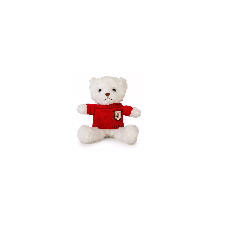 BIAŁY MIS W WEŁNIANYM CZERWONYM SWETERKU Z LOGO