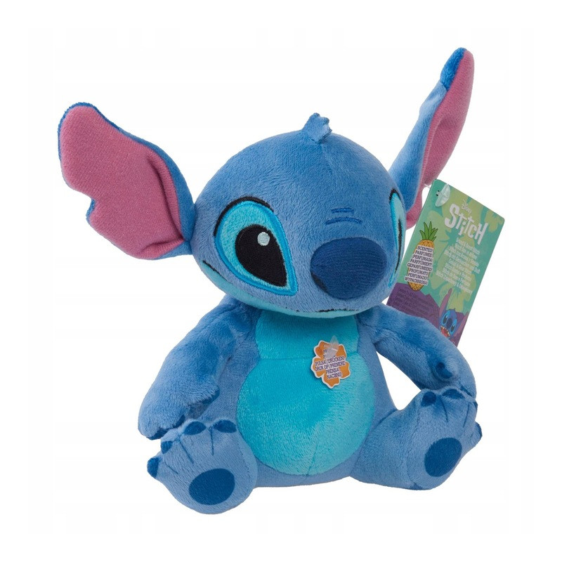 Mały kosmita, pluszowy Stitch, bohater filmu Disneya, w wersji z efektami dźwiękowymi i zapachem. Milutki pluszak o wymiarach 15 cm został wykonany z aksamitnie miękkich materiałów i jest wypełniony granulkami o zapachu ananasa. Aby urozmaicić zabawę, naciśnij jego brzuszek, aby usłyszeć śmieszne powiedzenie w oryginalnym języku Stitcha. Ten wyjątkowy, niebieski kosmita z pewnością zapewni dużo uśmiechu, słodkie przytulanki i psotne towarzystwo podczas zabawy w domu, nocowania u przyjaciół, długich przejażdżek samochodem i przy każdej innej okazji wymagającej niecodziennej zabawy.