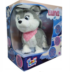 Interaktywny Piesek Luna to idealna propozycja dla każdego dziecka marzącego o psim przyjacielu. Ten szaro-biały kundelek ma niezwykle mądre, czarne oczka i czarny nosek, którym wywęszy każdy psi przysmaczek. Jego futerko jest bardzo mięciutkie, zachęcające do przytulania. Interaktywny Piesek Luna zachowuje się jak prawdziwy pies! Chodzi, rusza głową, potrafi lizać, siadać, machać ogonkiem a nawet podać łapę! Każdy ruch aktywowany jest poprzez czujniki umieszczone w różnych miejscach na zabawce- na głowie, plecach oraz przy uszach. Ale to nie wszystko! Luna potrafi także szczekać, zachęcając do zabawy, skomleć, gdy jest smutny, lub czegoś się boi, oraz wzdychać, kiedy zmęczy go zbyt długa aktywność. Swoją miłość okazuje głośnym lizaniem