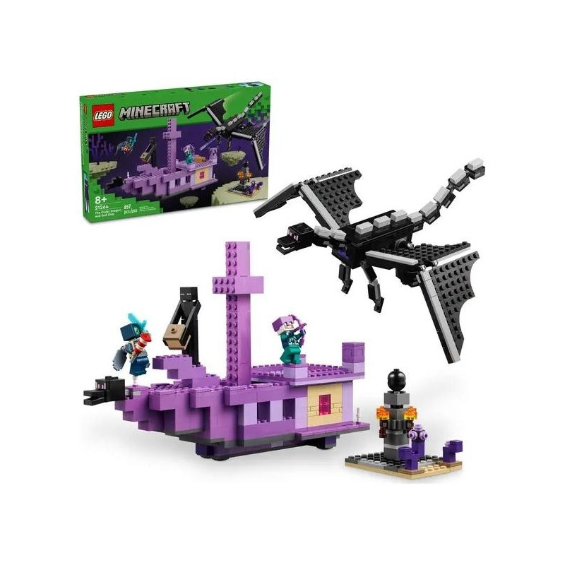 Zestaw oparty na grze komputerowej zestaw LEGO Minecraft zawiera figurki z Minecrafta; dzieci mogą odgrywać bitwy ze smokiem i przygody na pokładzie statku. Zestaw LEGO Minecraft dla dzieci inspirowany grą zawiera smoka Kresu i statek do zbudowania oraz badacza Kresu, rycerza Kresu i Endermana. Kreatywne zabawki dla chłopców i dziewczynek w zestawie ruchoma figurka smoka i statek ze zdejmowanym dachem i otwieranymi bokami umożliwiającymi dostęp do w pełni wyposażonego wnętrza. Zabawka dla 8-latka i fanów smoków zestaw LEGO Minecraft dla dzieci zawiera autentyczne detale, takie jak broń, skrzydła elytry badacza Kresu, fajerwerki i cenne smocze jajo. Instrukcje 3D dzieci mogą pobrać aplikację LEGO Builder, aby korzystać z cyfrowych narzędzi do powiększania i obracania modeli w 3D, zapisywania zestawów i śledzenia postępów.