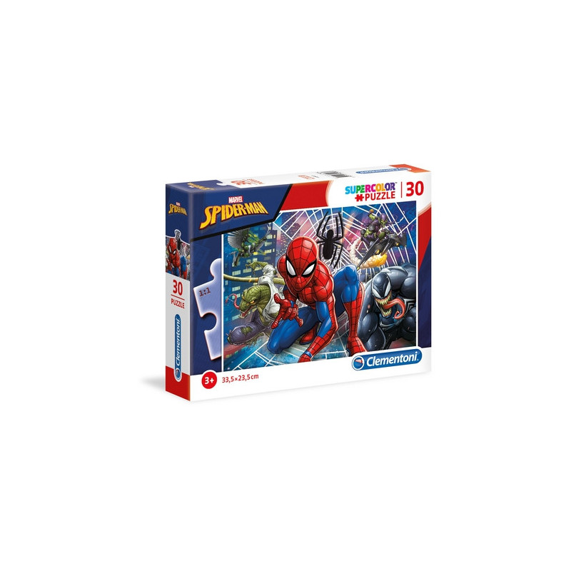Puzzle 30 Spider-man firmy Clementoni.W zestawie 30 puzzli z których dziecko ułoży obrazek o wymiarach 38,5 x 23,5 cm. Dzieci przy układaniu puzzli rozwijają swoje zdolności manualne oraz ćwiczą pamięć wzrokową. Uwaga:Nieodpowiednie dla dzieci w wieku poniżej 3 lat ze względu na ryzyko udławienia małymi elementami.