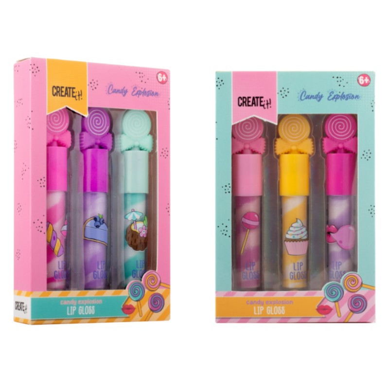 Każdy błyszczyk ma unikalny, urzekający aromat, który przypomina ulubione dziecięce przysmaki. W zestawie znajdują się trzy różne kolory.