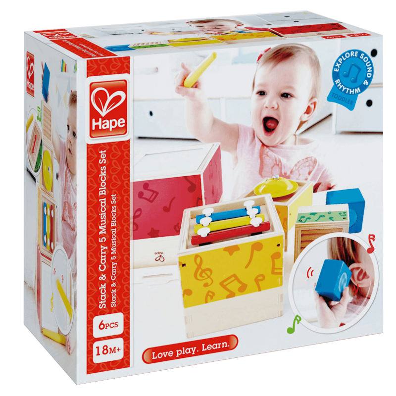 Dziecko, dzięki układance muzycznej może tworzyć wspaniałą muzykę oraz odkrywać nowe melodie i rytmy. Pięć klocków o różnej wielkości można ułożyć w dowolny sposób i każdy z nich odpowiada za inny instrument muzyczny. W zestawie możemy znaleźć bęben, ksylofon, grzechotkę i minigong oraz pałeczkę do grania na perkusji! Ta zabawka pozwala dziecku uczyć się kształtów i kolorów oraz odkrywać nowe, muzyczne umiejętności. Produkt można łatwo przenosić dzięki uchwytowi i konstrukcji do przechowywania. Zabawka wykonana jest z wysokiej jakości drewna, pokrytego nietoksycznymi farbami.