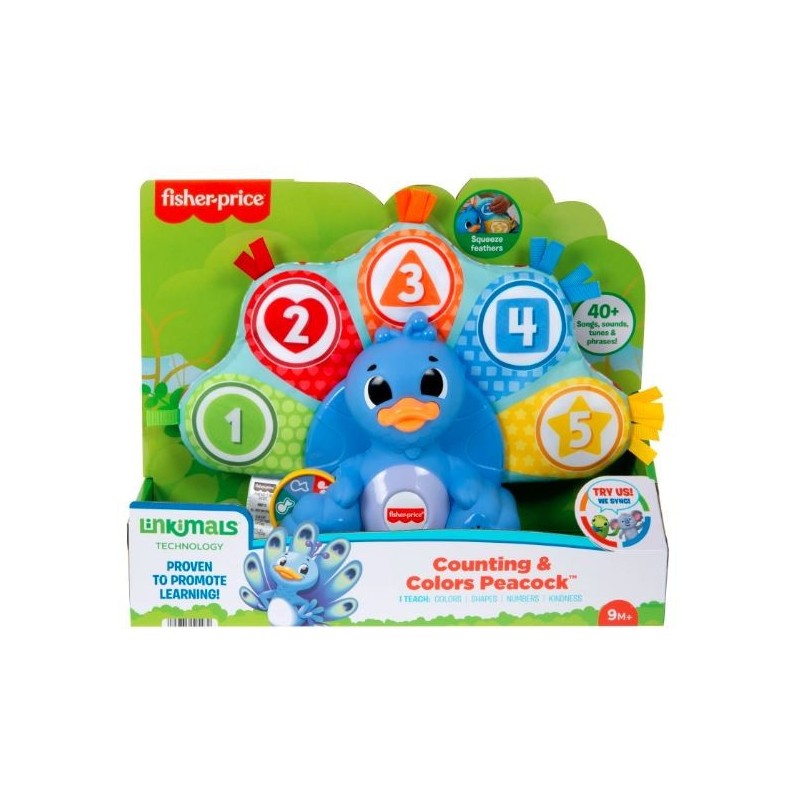 Interaktywny Paw to edukacyjny przyjaciel, który wprowadza malucha w świat cyferek, liczenia, kolorów, kształtów i życzliwości dzięki wesołej zabawie. Dzieci mogą ściskać 5 kolorowych piórek lub kręcić kółeczkiem, aby aktywować radosne piosenki, dźwięki, melodie, wypowiedzi i wielokolorowe światełka. Mięciutkie wstążeczki na piórkach pawia zapewniają dodatkowe wrażenia sensoryczne. Cechy zestawu: