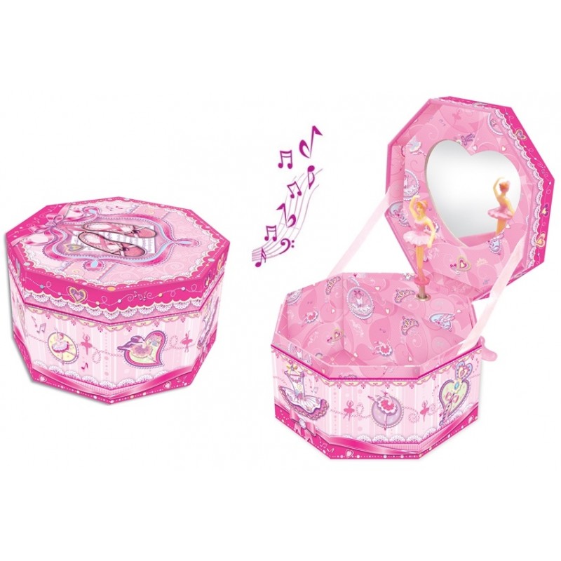 Pozytywka, gra klasyczną melodię. Gdy melodia przestanie grać, pozytywkę wystarczy nakręcić. Działa dzięki specjalnemu mechanizmowi, nie wymaga baterii. Po otwarciu figurka będzie się kręcić. Dodatkowo pozytywka zawiera lusterko oraz miejsce na schowanie drobiazgów.