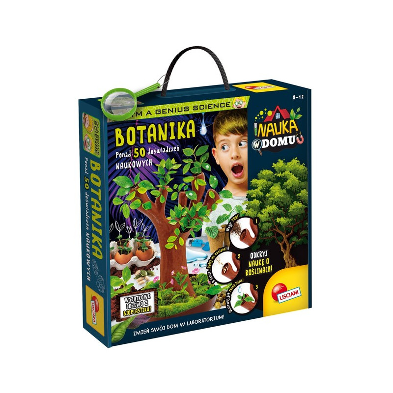 Zielony zestaw naukowy! Wiele informacji i doświadczeń do wykonania w domu, dotyczących różnych typów roślin i nasion. Wewnątrz opakowania znajduje się również wyjątkowe drzewo z bioplastiku do uprawy, które należy wypełnić torfem i nasionami. Wyhoduj bujne liście na swoim drzewie!