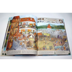 Polska. Na tropie historii to wyjątkowa, wielkoformatowa książka, dzięki której dziecko pozna historię Polski i wysłucha opowieści o dziejach naszego kraju. Wprowadź dziecko do fascynującego świata historii przedstawionej w zrozumiały i obrazowy sposób, gdzie czytelnik jest w samym centrum wydarzeń. Od dynastii Piastów do życia w PRL-u. Wypatrujcie bohaterów z różnych okresów historycznych, poznajcie ich codzienność, zadania i charakterystyczne dla nich elementy ubioru, wyposażenia wnętrz i otoczenia. Przyjrzyjcie się dokładnie, kolorowe plansze kryją mnóstwo fascynujących szczegółów, których nie można pominąć. 12 ilustracji tworzy grę obserwacyjną, która rozwija spostrzegawczość i koncentrację u najmłodszych. Jak żyli mieszkańcy średniowiecznego miasta? W co ubierała się szlachta? Co czekało na pasażerów w czasie rejsu transatlantykiem „Batory”? Dzięki audioprzewodnikowi do pobrania czytelnik pozna odpowiedzi na wszystkie pytania, angażując podczas korzystania z książki zmysł wzroku i słuchu.