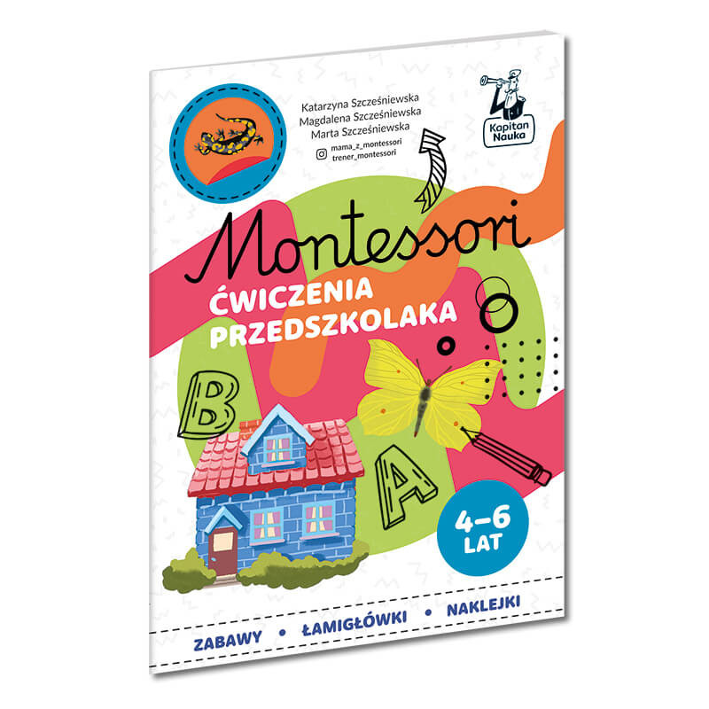 Bogato ilustrowana książka pełna zabaw i łamigłówek przygotowanych w duchu pedagogiki Montessori. Ćwiczenia dla przedszkolaków przybliżają wiedzę z kilku obszarów tematycznych, takich jak: świat roślin, świat zwierząt, kontynenty, czas i historia, tradycje i zwyczaje oraz kosmos. Zabawy zostały tak opracowane, aby zachęcić dziecko do zadawania pytań, obserwowania i eksperymentowania. Zadania łączą łamigłówki logiczne z pomysłami na wykorzystanie różnorodnych technik plastyczno-sensorycznych. Dzięki temu przedszkolak może rozwijać wiedzę w najbardziej naturalny sposób, czyli poprzez obserwację, działanie i doświadczenie. Przy okazji trenuje pamięć, koncentrację i sprawność manualną, wzbogaca słownictwo, stawia pierwsze kroki w nauce czytania, pisania i liczenia oraz uczy się uważności na otaczający świat dzięki wykorzystaniu metody Montessori w praktyce. Montessori. Ćwiczenia przedszkolaka (4–6 lat) zostały opracowane przez certyfikowane instruktorki metody Montessori. Zeszyt ćwiczeń stanowi idealne uzupełnienie książki Montessori. Elementarz przedszkolaka (4–6 lat).