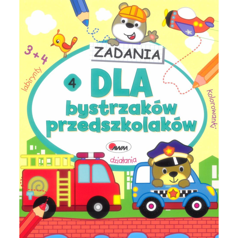Dzięki ODPOWIEDNIO DOBRANYM i ZRÓŻNICOWANYM ZADANIOM dzieci mogą ćwiczyć wiele kompetencji, świetnie się przy tym bawiąc. Książka w przyjaznej dla maluchów formie proponuje trening takich aktywności, jak: LICZENIE, ZNAJDOWANIE PODOBIEŃSTW I RÓŻNIC, PRZECHODZENIE LABIRYNTÓW, RYSOWANIE PO ŚLADZIE, ŁĄCZENIE KROPEK, KOLOROWANIE. Barwna, sympatyczna SZATA GRAFICZNA zachęca do aktywności.