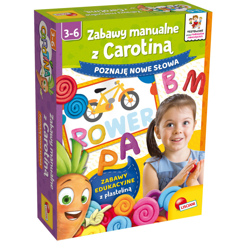 Poznaję nowe słowa z serii Carotina od firmy LISCIANI to zabawy manualne dedykowane najmłodszym dzieciom.