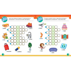 W książce na rozwiązanie czekają dwadzieścia cztery krzyżówki. Wszystkie hasła zostały zilustrowane oraz podpisane, co ułatwia uzupełnianie diagramów i jest okazją do ćwiczeń w czytaniu. Nowe wyrazy – rozwiązania krzyżówek – zostały objaśnione. Krzyżówki obrazkowe to doskonała gimnastyka umysłu.