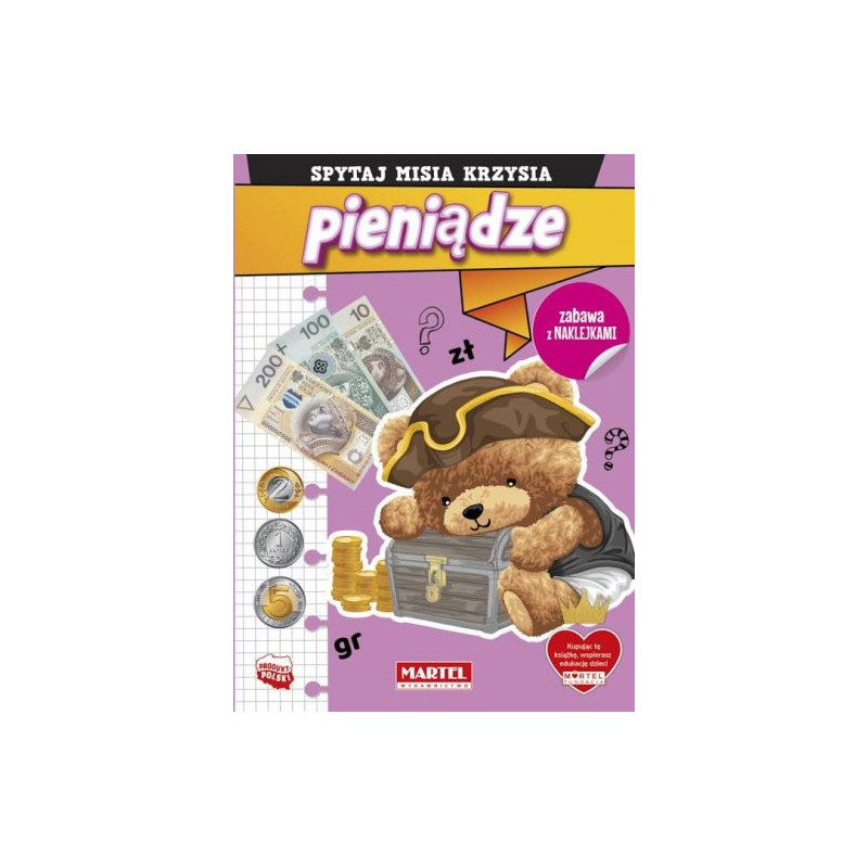 Sympatyczny niedźwiadek odpowie na wszystkie pytania dotyczące pieniędzy oraz liczenia, a także podpowie, czym jest waluta i jak bawić się w zakupy. Książka łączy ciekawe opowieści, kolorowe ilustracje i proste wyjaśnienia, dzięki czemu dzieci uczą się poprzez zabawę, rozwijając umiejętności matematyczne i finansowe.