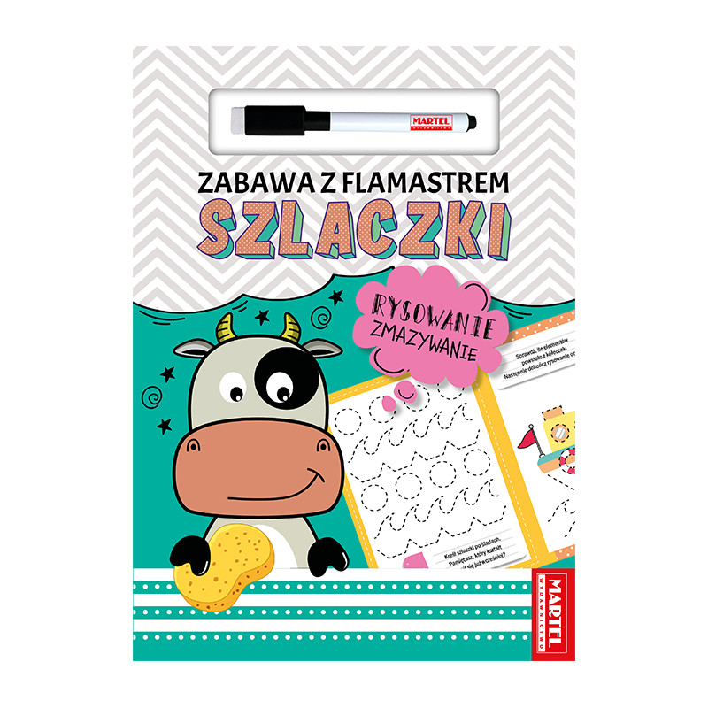 Super książka z flamastrem suchościeralnym to doskonały pomysł na zagospodarowanie wolnego czasu przez dzieciaki. Idealny trening umysłowy i rozwój motoryki małej. Pisanie po śladach i zmazywanie to niekończąca się zabawa.