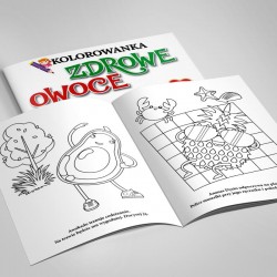 Książeczka zawiera wesołe ilustracje owoców. Będzie nie tylko świetnym sposobem na twórczą aktywność dziecka, ale może okazać się pomocna we włączeniu nowych smaków do codziennej diety.