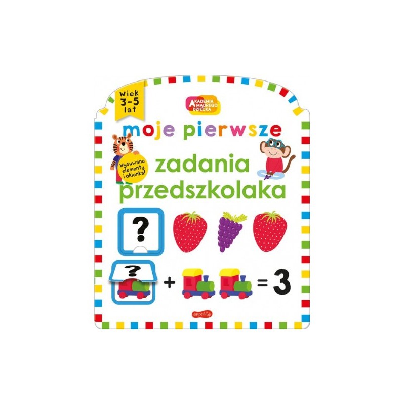 "Moje pierwsze zadania przedszkolaka" to idealna książeczka dla każdego przedszkolaka. Dzięki niej Twoja pociecha pozna cyfry, kolory, kształty, a nawet pozna podstawy dodawania. Książeczka jest pełna kolorowych obrazków, które przedstawiają różne sytuacje. Dziecko dowie się z niej co należy spakować do przedszkola oraz co ciekawego można się w nim nauczyć. Książeczka posiada specjalne otwierane okienka, pod którymi ukrywają się różne ciekawostki. Książka ma grube, kartonowe strony, łatwe do przerzucania przez malutkie rączki dziecka.