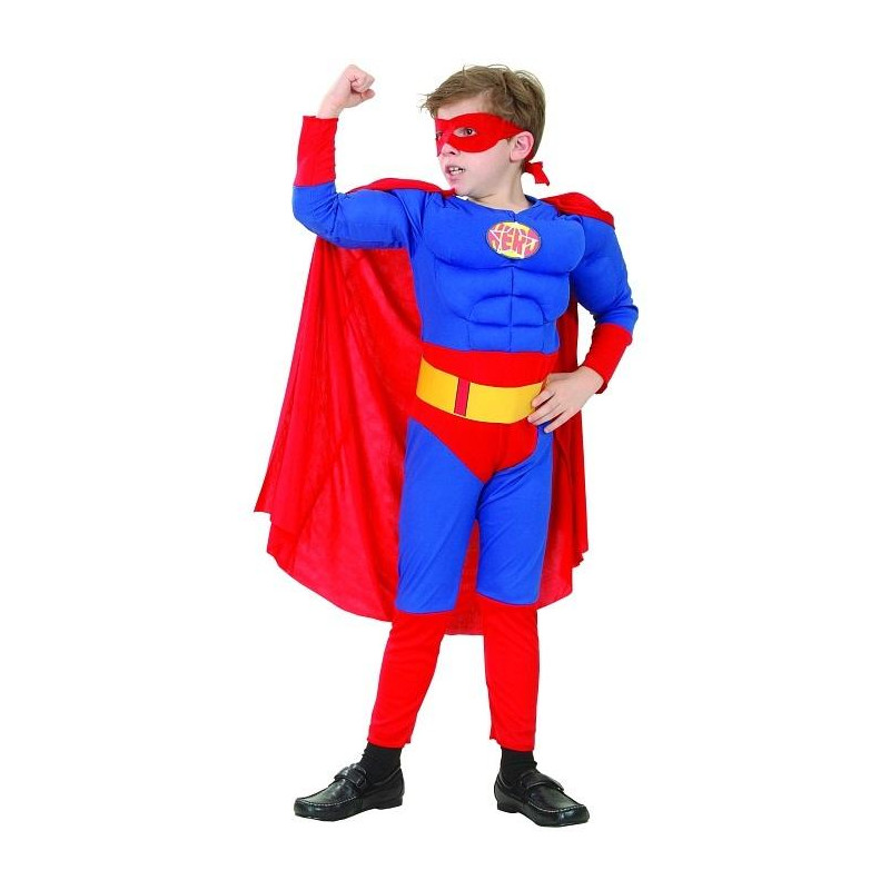 Przepiękny strój dla dzieci Superbohater z muskułami, idealny pomysł na bal przebierańców i karnawałowy!