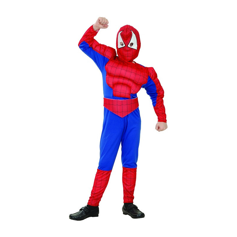 Strój Pajęczy Bohater z muskułami firmy Godan. Kostium dziecięcy Pajęczy Bohater składający się z spodni, bluzy, kaptura, paska Całość wykonana jest z wysokiej jakości materiałów. Rozmiar 110- 120 cm. Ostrzeżenie:Nieodpowiednie dla dzieci w wieku poniżej 36 miesięcy. Małe części.