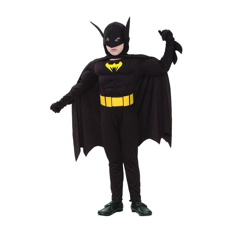Strój Strój Nietoperz firmy Godan. Kostium dziecięcy składający się z kombinezonu z muskułami,z paskiem, kaptura z peleryną. Całość wykonana jest z wysokiej jakości materiałów. Rozmiar 110- 120 cm. Ostrzeżenie:Nieodpowiednie dla dzieci w wieku poniżej 36 miesięcy. Małe części.