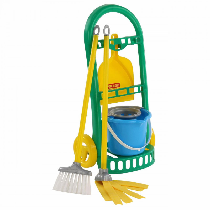 Zestaw "Czyścioch" firmy Polesie. Zestaw wykonany z wysokiej jakości materiałów. Składa się z mopa, dużej szczotki oraz szufelki, wiadra z koszyczkiem do odciskania wody. Wszystko zapakowane w poręczny wózek, aby móc go zabrać ze sobą wszędzie. Wiek 3+