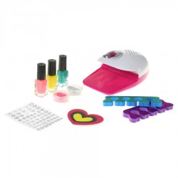 Zestaw do stylizacji paznokci. Akcesoria: suszarka do paznokci, 3 lakiery, pilniczek, 2 brokaty, separatory, naklejki na paznokcie. Produkt na baterie 2 x "AA" - w zestawie brak. Zaproś mamę, siostrę, przyjaciółkę i stwórzcie niepowtarzalne paznokcie. Zabawka pobudza dziecko do kreatywnego myślenia. Wiek 5+.