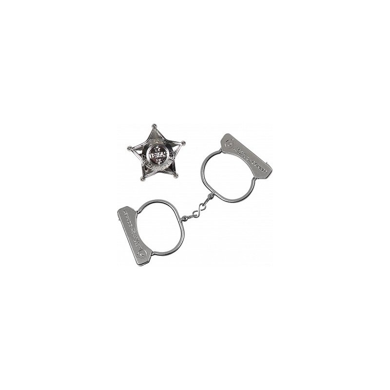 Zestaw dla kowboja: metalowe kajdanki i odznaka. Poczuj się, jak prawdziwy szeryf. Wiek 3+.