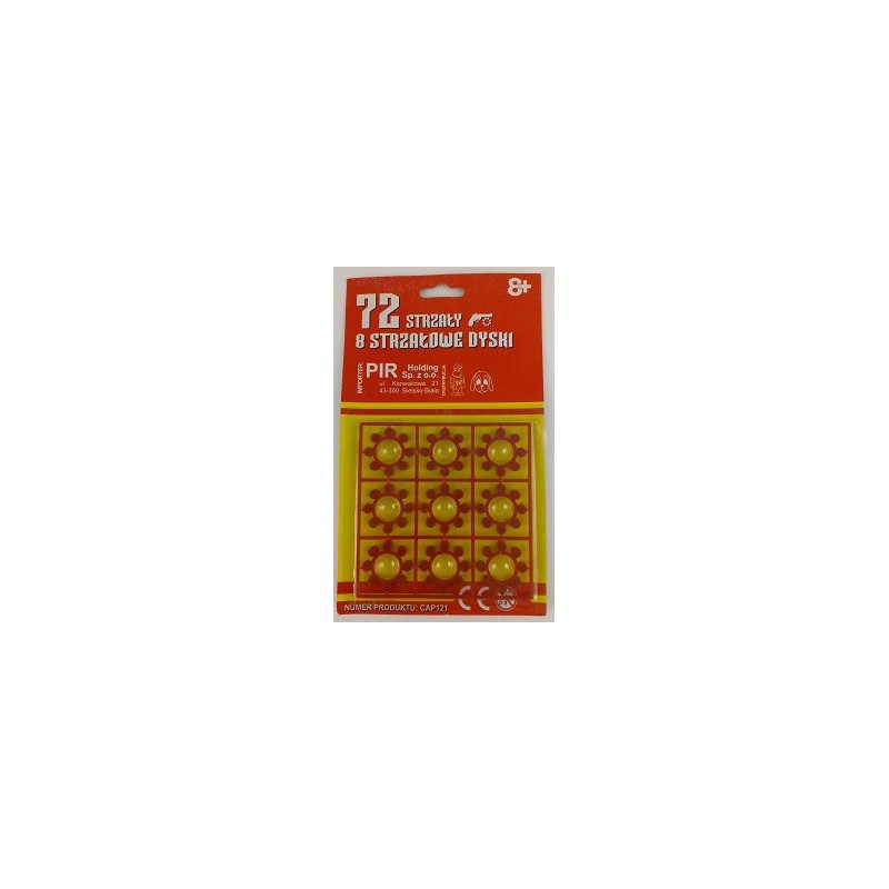 Naboje kapiszony na blistrze 8 strzałowe, 9 sztuk, 72 strzały. Wiek 3+.