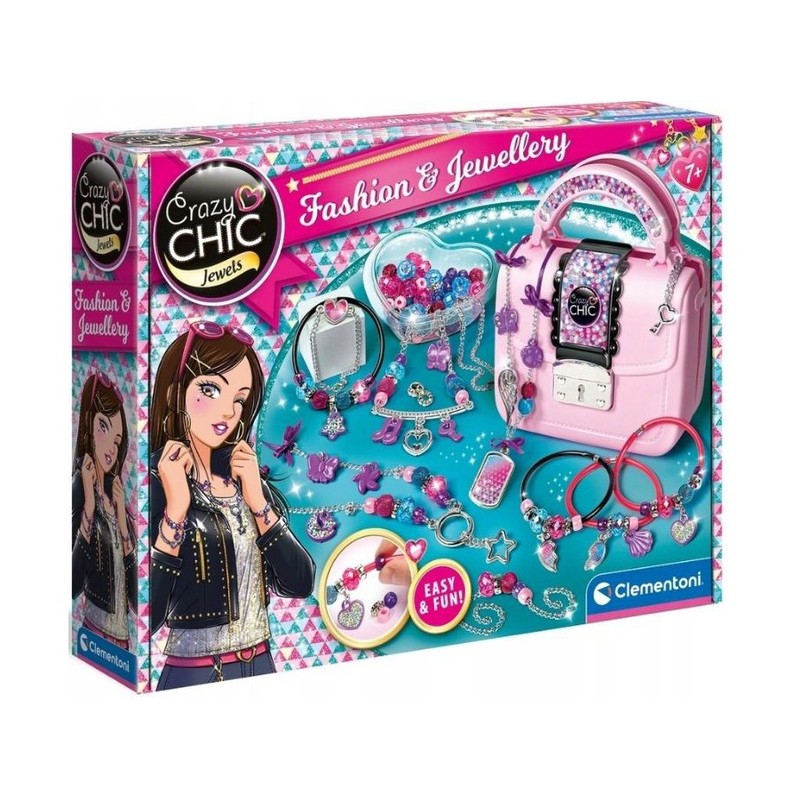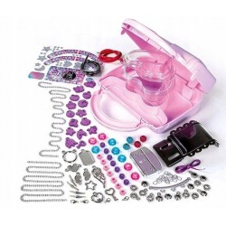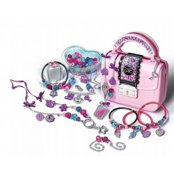 Zestaw umożliwiający stworzenie własnej biżuterii. W modnej różowej torebeczce do złożenia znajduje się szkatułka oraz wszystko, co potrzebne, aby zaprojektować spersonalizowane modne dodatki. Komplet zawiera wiele łańcuszków, zawieszek, koralików, naklejek itp. Torebeczka jest tak zaprojektowana, aby pomieścić wszystkie elementy i kreacje i aby można było mieć zawsze przy sobie pracownię biżuterii. Stwórz odlotowe rzeczy dla siebie i przyjaciół. Zabawka, która rozwija wyobraźnię, idealna na prezent.