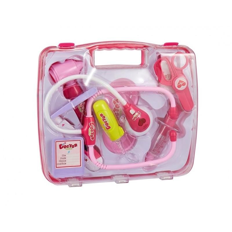 Zestaw lekarski w kolorze różowym zachwyci każdą małą lekarkę. Idealny pomysł na zapoznanie dziecka z zawodem lekarza, jednocześnie pozwalając mu na pozbycie się lęku przed wizytą w gabinecie.
