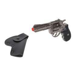 Pistolet posiada bębenek oraz możliwość wykonania 8 strzałów. Dodatkowo producent zadbał o efekty dźwiękowe oraz zapachowe. Do zestawu dołączono również kaburę. Broń koloru czarnego.
