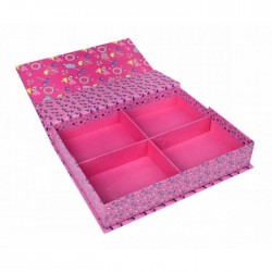 Przechowuj swoje skarby w tej pięknej szkatułce z lusterkiem. Pudełko podzielone jest na 4 równe części. Dzięki składanej pokrywie możesz ustawić lusterko tak, aby z łatwością wykonać makijaż lub przymierzyć biżuterię, którą przechowujesz w szkatułce. Idealny prezent dla małej modnisi. Wiek 3+.