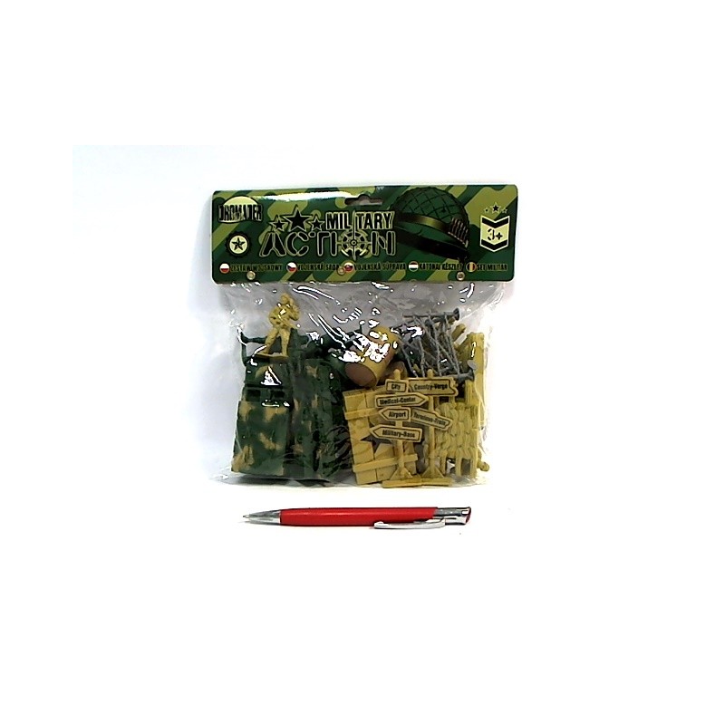 Idealny do zabawy w wojsko - zestaw żołnierzyków z akcesoriami. Wiek 3+.