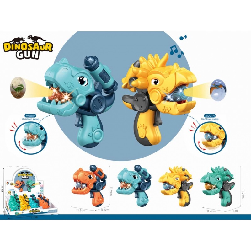 Pistolet z projektorem ze światłem i dźwiękiem w kształcie dinozaurów. Pistolet występuje w 4 wariantach kolorystycznych, wysyłamy losowo. Jeżeli życzą sobie Państwo konkretny kolor, prosimy zaznaczyć w zamówieniu!