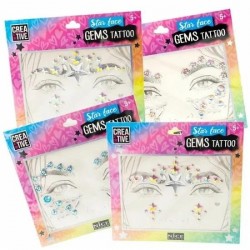 Zestaw do dekoracji twarzy. Kamienie szlachetne z efektem kryształów są samoprzylepne i można je łatwo umieścić na twarzy. Są idealne do noszenia na przyjęcia urodzinowe lub imprezy tematyczne, aby każda dziewczynka mogła poczuć się wyjątkowo. Blister zawiera: 1 arkusz 17x17 cm z ozdobnymi kamieniami na twarz. Mix, wysyłka losowa, cena za 1 arkusz. Wiek: 5+