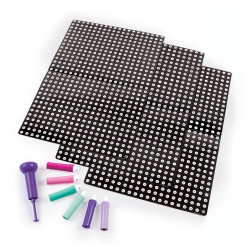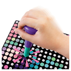 Poznaj przyjemność i satysfakcję z tworzenia plakatów techniką kropkowania! Sprawdź, jaki numer widnieje na papierowej kropce na stempelku, a następnie znajdź pasujący do niego numer na plakacie. Ustaw stempelek równo na kropce i stempluj! Kontynuuj zabawę, aż uzyskasz trzy kolorowe plakaty, które możesz powiesić na ścianie i w ten sposób ozdobić dowolne pomieszczenie.