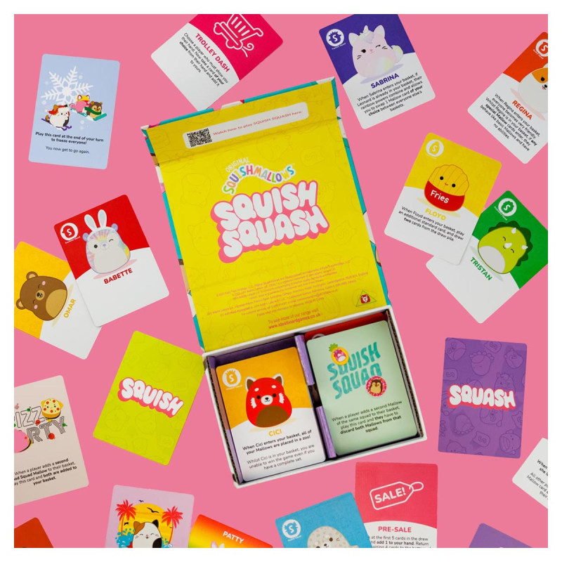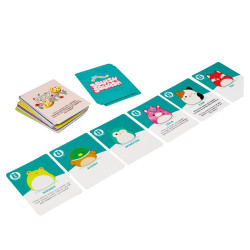 Ta ekscytująca gra wymaga, zarówno szybkości, jak i bystrej obserwacji. Strategiczna gra karciana Squishmallows zaprojektowana dla fanów, zarówno starszych jak i młodszych, skupiająca się na kluczowych elementach kolekcjonowania. Celem gry jest bycie pierwszym graczem, który zbierze i umieści 6 Squishmallows w koszyku przed innymi graczami.
