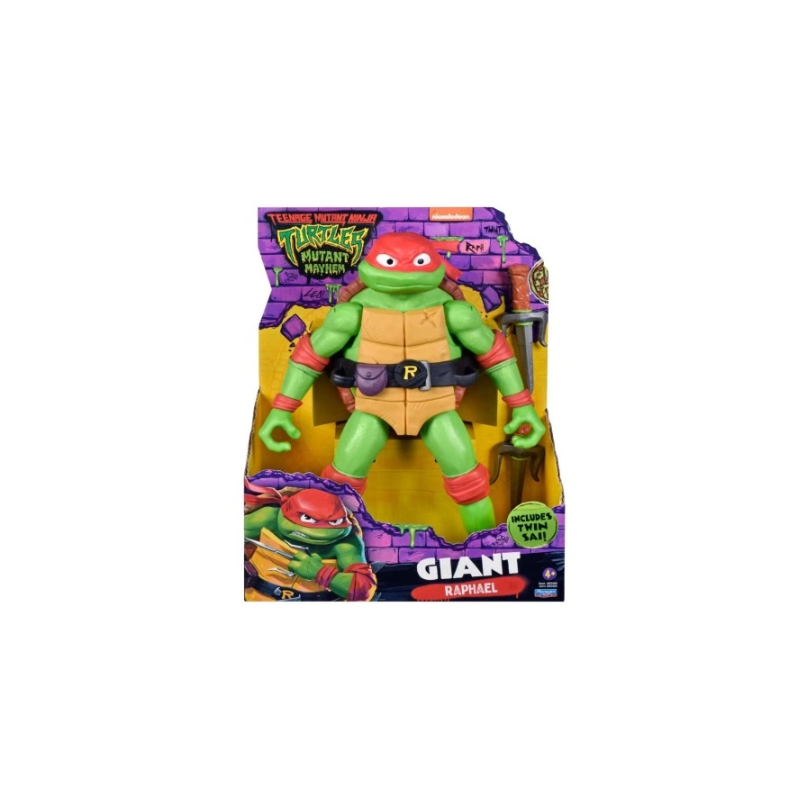 OPAKOWANIE FILMOWE: Raphael jest dostępny w bogato zdobionym opakowaniu z otwartą tacą z jasnymi, odważnymi detalami, które zawierają branding filmu TMNT Mutant Mayhem.