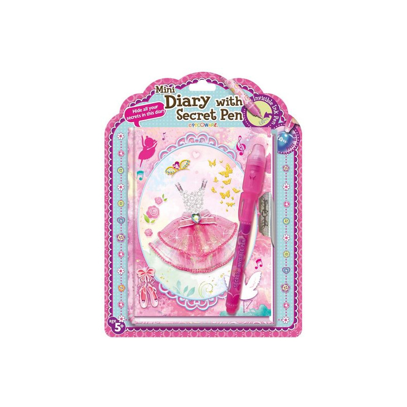Pamiętnik z kartkami w linie, jest bogato zdobiony. Jedna końcówka długopisu pisze „niewidzialnym” tuszem, który będzie widoczny dopiero po zamalowaniu go drugą końcówką. W zestawie 2 kluczyki do otwierania zamka.